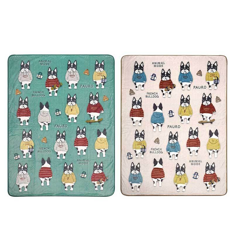 このブランケットは、表地になめらかなポリエステル素材、裏地にはふわふわのボアを使用した贅沢仕様。
