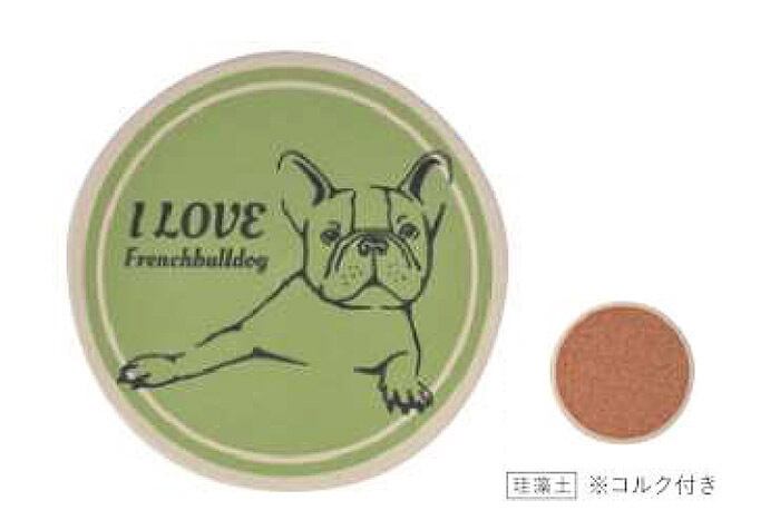 グラフィカルなフレンチブルのイラストが描かれ、カラーはグレー・ブルー・グリーンの3色があり、それぞれ別のイラストが描かれています。