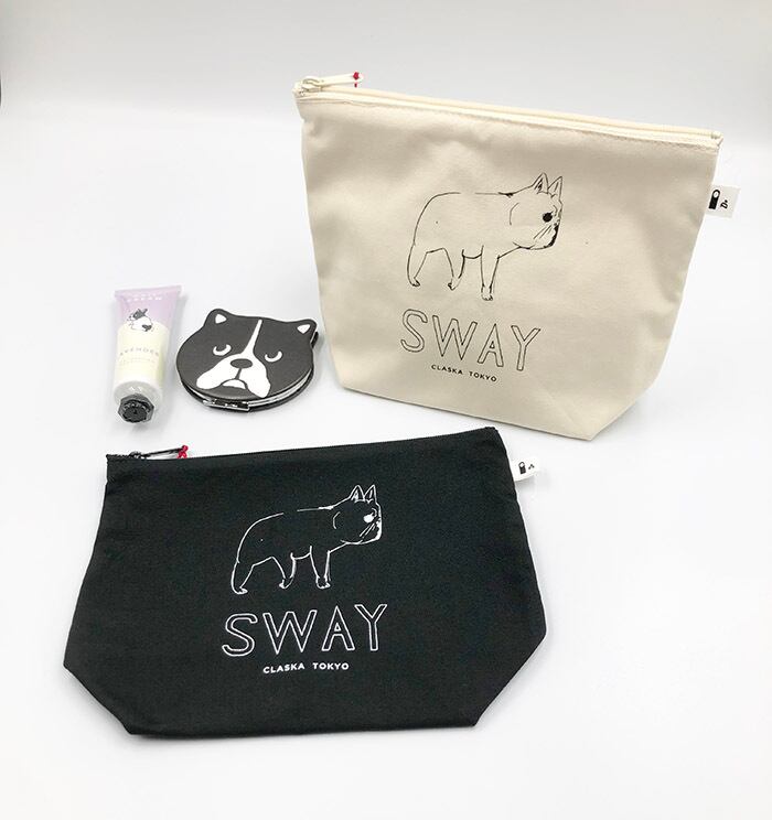 ちょっぴり頼りなげな表情で、思わず頬がゆるんでしまう愛らしさ。オフホワイトのボディに白抜きの「SWAY」のロゴのホワイトとブラックのボディに同じロゴのブラックがお選びいただけます。どちらもシュッとした大人っぽい印象です。