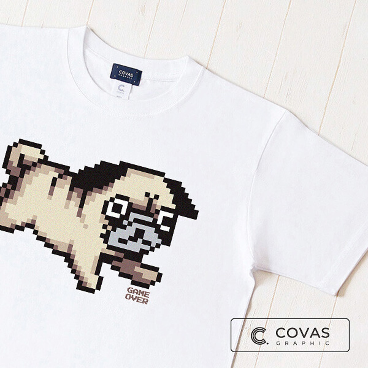 昔のファミコンに出てくるような8bitパグがどこか懐かしくてカッコイイ。幅広い年代の方に着ていただけるシンプルなデザインです。おしゃれにも着こなせるサイズ感でXS・S・M・L・XL 5サイズからお選びください。