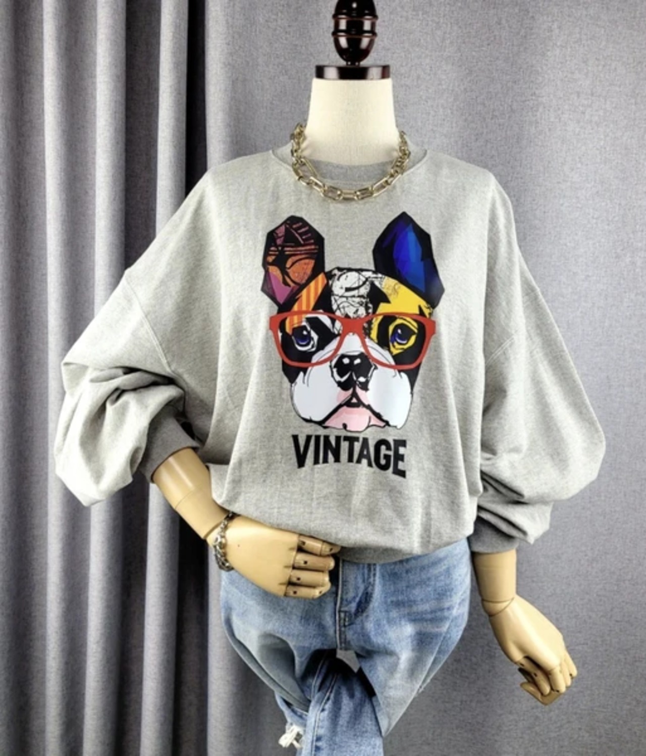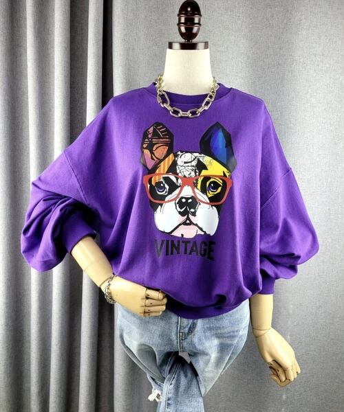 カラフルでユニークなブルドッグイラストがポイント。ルーズなシルエットのざっくりとした長袖MTM(トレーナー)です。パンツにさっと合わせるだけでこなれた洗練されたスタイルに。