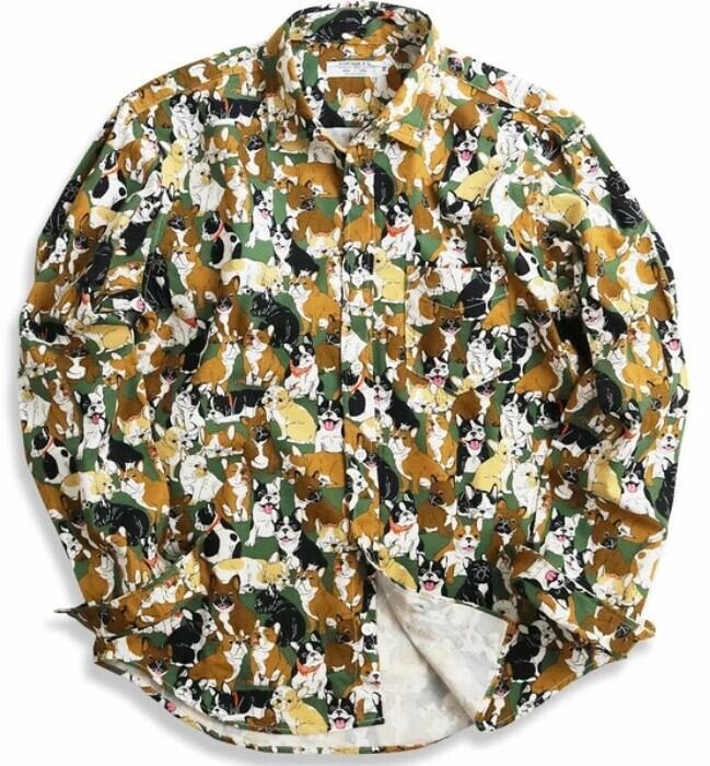 シャツ全体にびっしり詰まったかわいさ溢れる様々なフレンチブルが可愛すぎるシャツ。